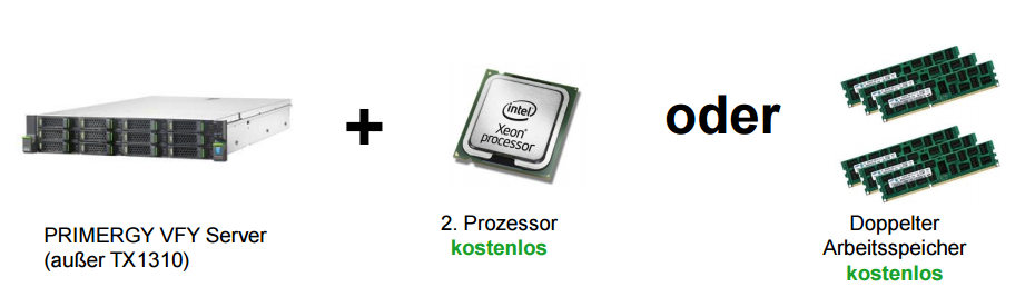 Noch bis zum 31.03. erhaltet ihr beim Kauf eines PRIMERGY VFY Server (außer TX1310) entweder einen 2. Prozessor kostenlos dazu oder könnt den Arbeitsspeicher verdoppeln. Auch hier gilt: Eure Anfragen direkt an uns unter 02261 9155050 oder vertrieb@oberberg.net stellen und von der Aktion profitieren!