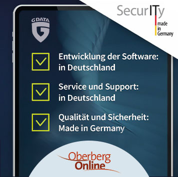 G DATA ist der Anti-Malware Pionier aus Deutschland, der auf mehr als 30 Jahre Erfahrung zurückblicken kann. Oberberg-Online ist G DATA Gold-Partner und begleitet die Entwicklung seit über 20 Jahren. In zahlreichen Kundenprojekten – egal ob als managed Service, als Schulprojekt, für öffentliche Auftraggeber wie Landkreise und Kommunen, oder im Unternehmensumfeld – sind wir der passende Ansprechpartner.