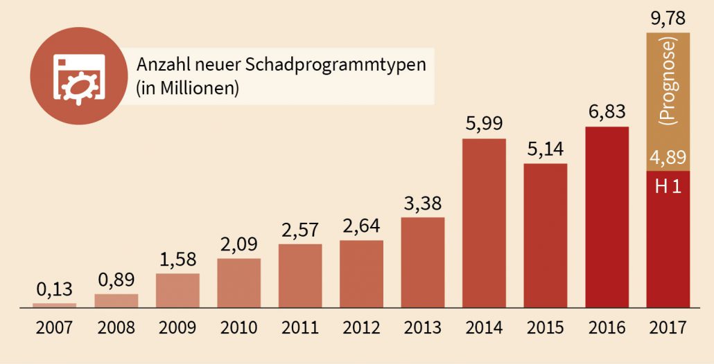 Im Security-Blog unseres Partners G DATA wurden aktuell die Zahlen neu entdeckter Malware für das 1. Halbjahr 2017 veröffentlicht.