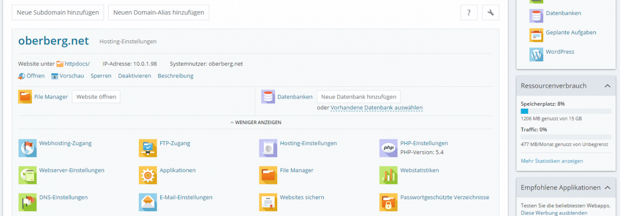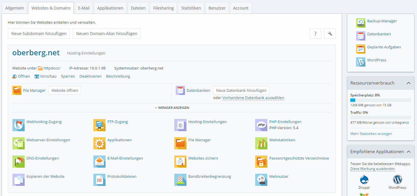 - Zugriff auf fertige Applikationen wie WordPress, Wiki, Drupal uvm.