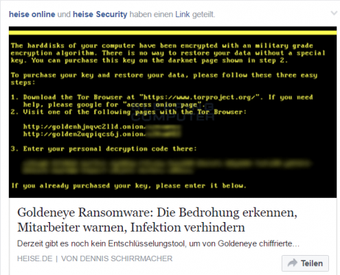 Goldeneye ist kein James Bond-Film, sondern der neueste Verschlüsselungstrojaner, der sehr gezielt an Personalverantwortliche in deutschen Unternehmen gerichtet ist. Dabei wird Bezug auf tatsächliche Stellenangebote genommen, so dass ein Verdacht…
