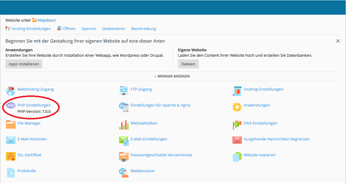 Als Webhostingkunde der Oberberg-Online haben Sie bereits heute über das Controlcenter (siehe Bild) die Möglichkeit, PHP 7 zu testen und für Ihre Website zu nutzten.