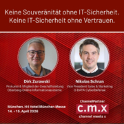 Dirk Zurawski (Oberberg-Online Informationssysteme GmbH) und Nikolas Schran (G DATA CyberDefense) zeigen beim c.m.x 2026, wie Security Services aus Deutschland echte digitale Souveränität ermöglichen – und warum Vertrauen der entscheidende Faktor für eine langfristige Kundenbeziehung ist.
