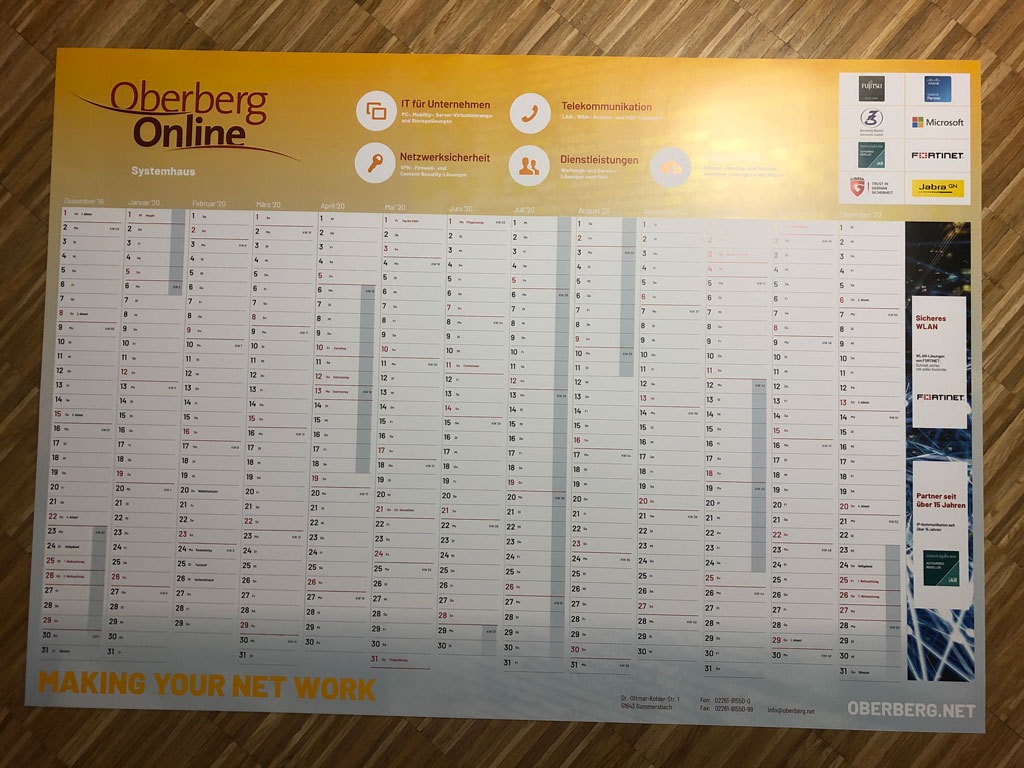 Wandplaner 2020 sind erhältlichNewsAb sofort sind unsere bewährten Wandplaner in der 2020er Version verfügbar. Erhältlich sind die Kalender kostenfrei bei uns im Büro, oder bei unseren Vertriebsmitarbeitern. 4. November 2019/von Dirk Zurawski https://www.oberberg.net/wp-content/uploads/2019/11/Kalender2020.jpg 768 1024 Dirk Zurawski https://2024.oberberg.net/wp-content/uploads/2024/05/Logo_OO_Claim_nebeneinander_bunt-RGB-NEU-500x79.png Dirk Zurawski2019-11-04 12:25:582019-11-04 12:25:58Wandplaner 2020 sind erhältlich